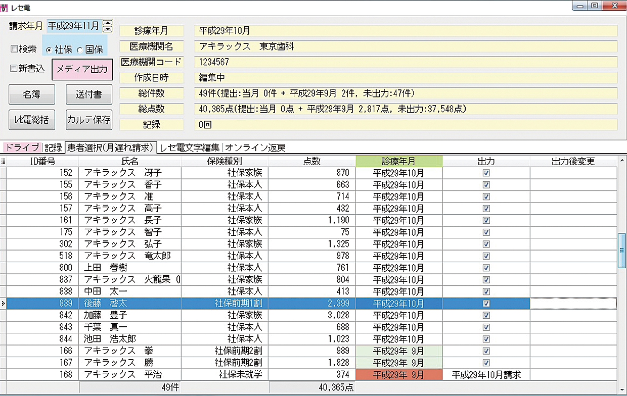 CD-Rへの出力が、どなたにも簡単操作で可能です。月遅れ分を一緒に書き込むことも簡単です。オンライン請求にも対応しています(別途インターネットなどの申し込みが必要です)。