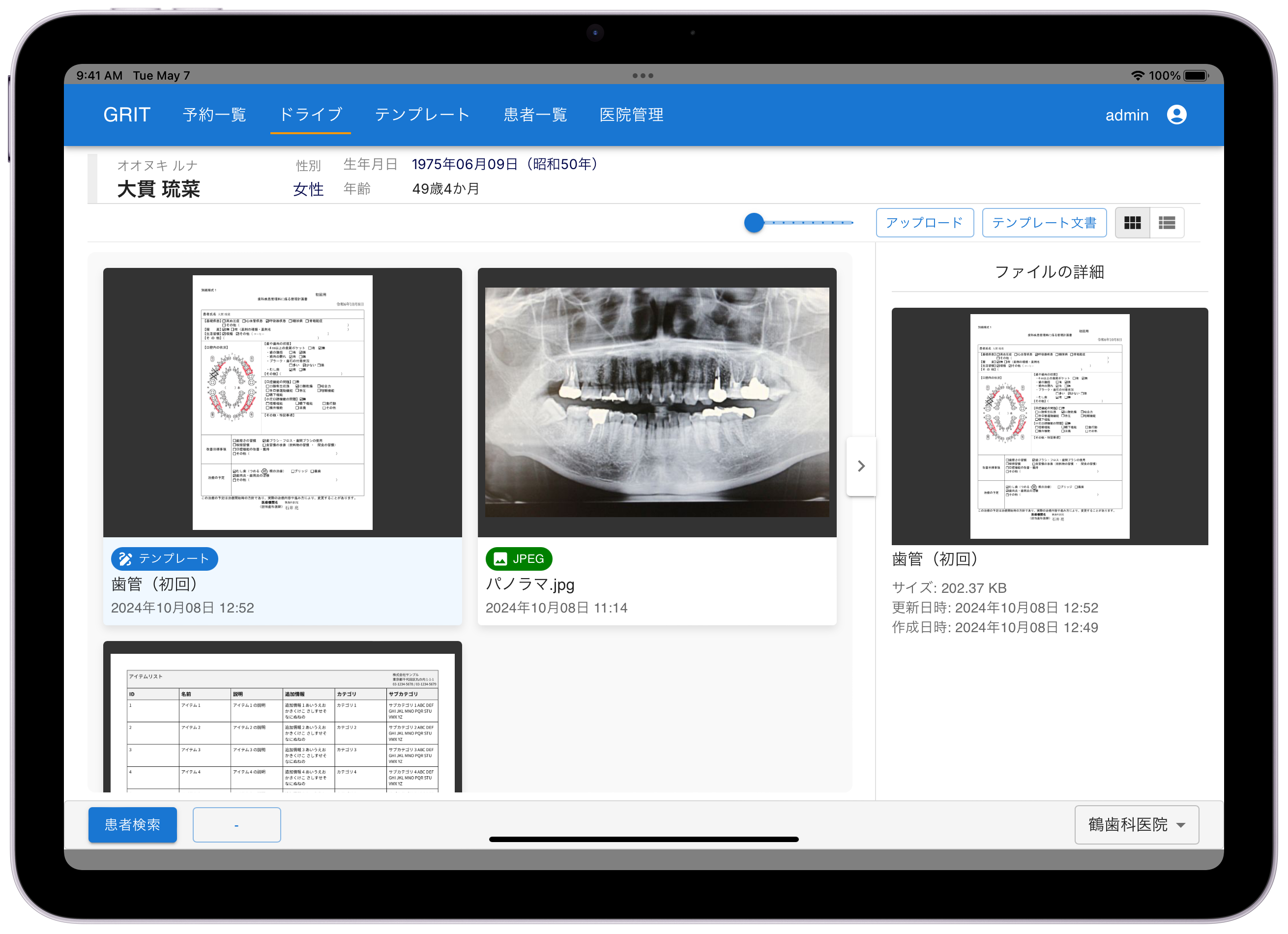 クラウド上で管理される患者ごとのデータ(レントゲン画像・口腔内画像・pdf診療書類など)は、インターネット接続環境下であれば、いつでもダウンロード/アップロードが行えます。 |